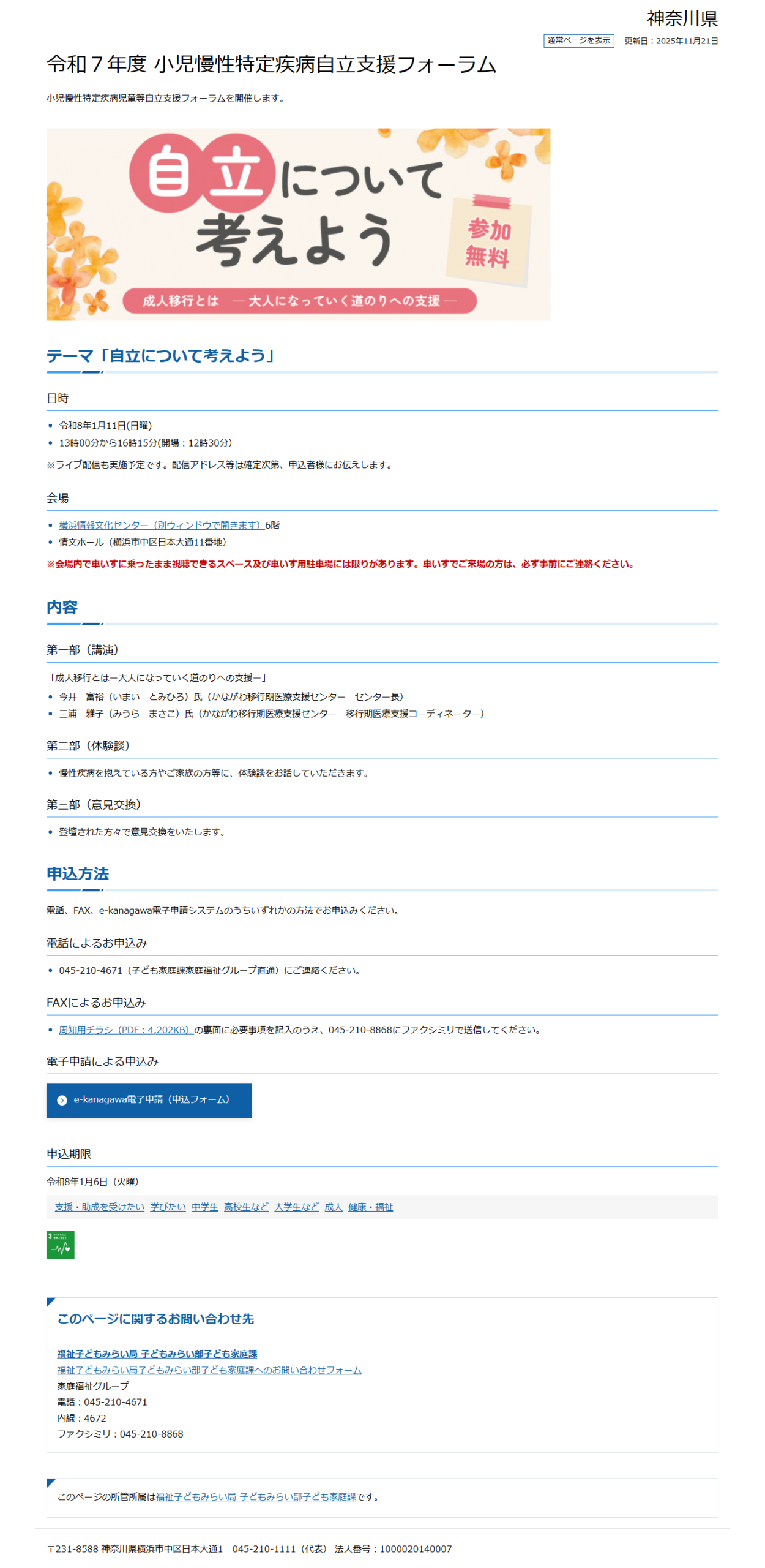 令和7年度 小児慢性特定疾病自立支援フォーラム